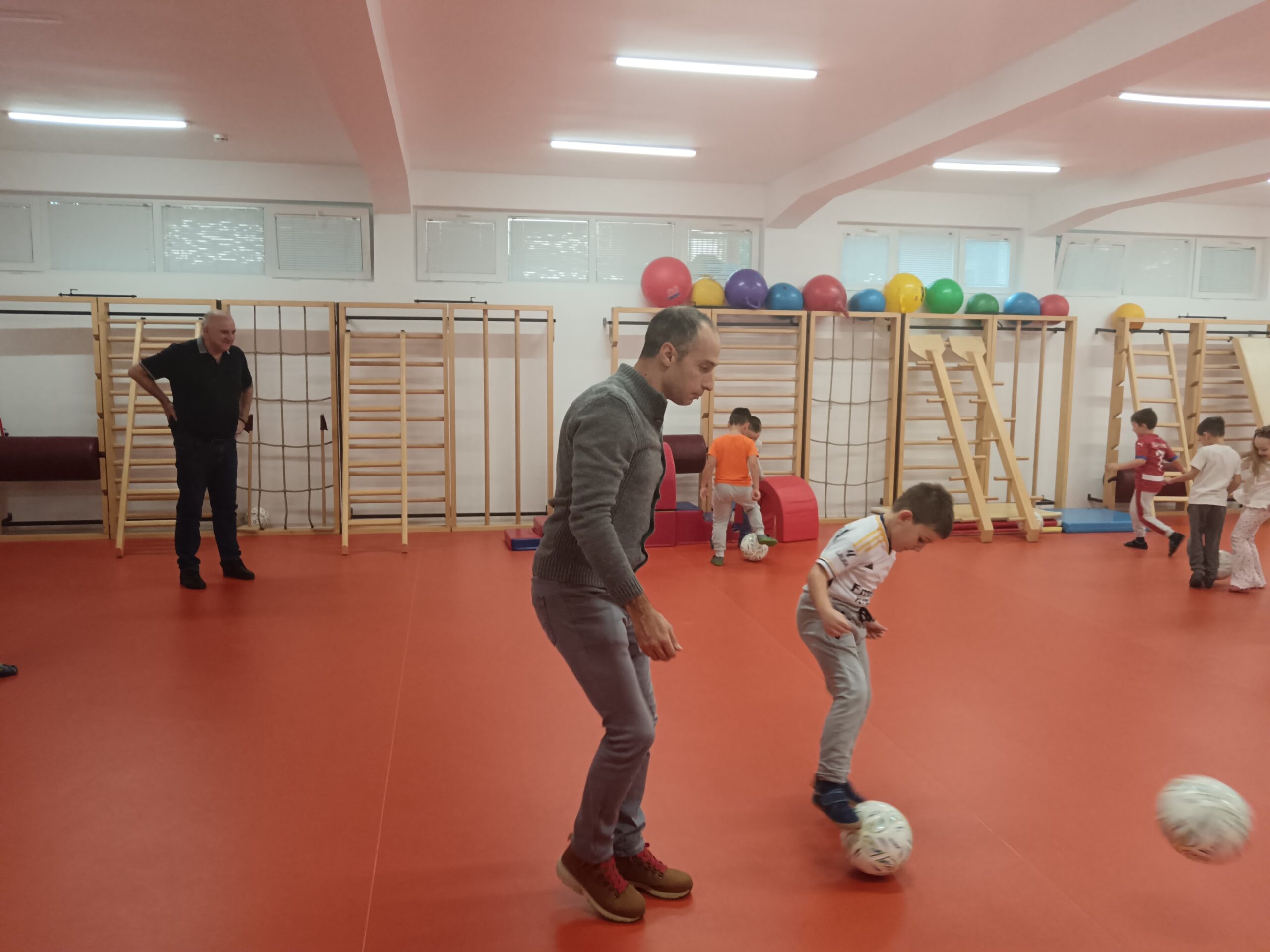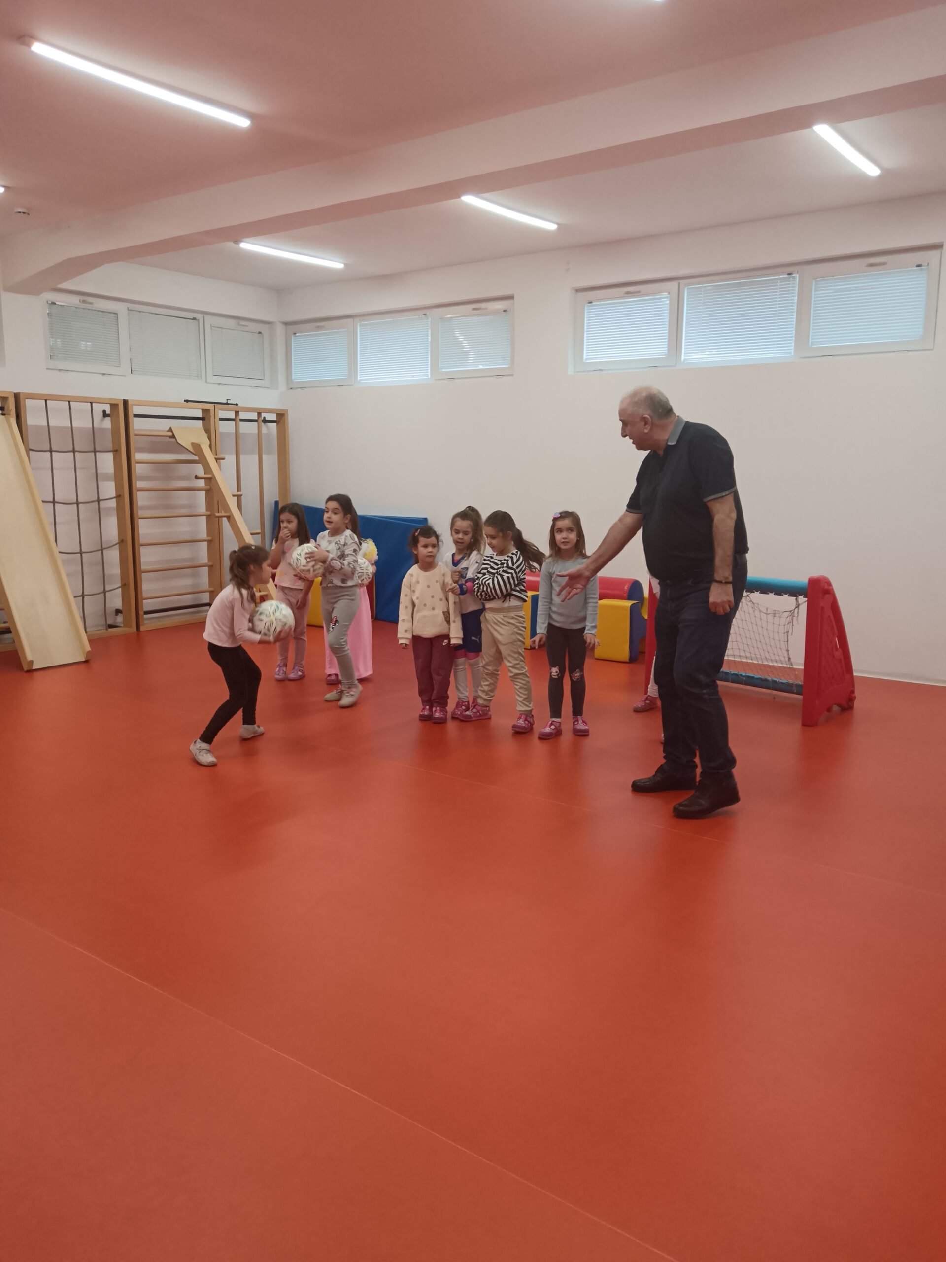 Prilikom posete predškolaca Opštini Veliko Gradište, u okviru Dečije nedelje i dana “Otvorenih vrata”, deca iz grupe “Zvezdica”, pozvala su predsednika naše opštine Dragana Milića, da im se pridruži u projektu “Vežbajmo mišiće”, i sa njima zaigra fudbalsku utakmicu. Takođe fudbalskoj utakmici se pridružuje i sekretar naše ustanove Milan Mitić.