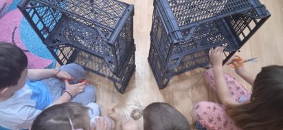 Uz sve to, igra šetnje ljubimaca traje sve vreme i deca donose još plišanih igračaka u vrtić, tako da dolazimo do problema gde spakovati sve te ljubimce. Deca pronalaze u sobi gajbe i počinju da ih pakuju u njih, ali onda nam izgledaju natrpano i ne leže lepo da mogu da spavaju kada mi odemo kući. Devojčica Z.S. dolazi na ideju da napravimo policu od gajbi i da gajbe povežemo kanapom. Tako od gajbi i kanapa pravimo zgradu u kojoj žive naši kućni ljubimci, svako na svom spratu i stavljamo je u prostor za simboličku igru.