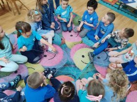 Naša priča o brizi o ljubimcima, nakon obeležavanja Svetskog dana osoba sa autizmom, prelazi u priču o brizi jednih o drugima. Kako bi se svako od nas u grupi osećeo dobro i prihvaćeno, odlučiujemo da odigramo igru „Mreža prijateljstva“ u kojoj koristimo plavi kanap kao boju obeležja osoba sa autizmom. Deca upućuju lepe reči jedni drugima, dodajući kanap iz ruke u ruku unakrsno i tako pletu mrežu prijateljstva. Na mrežu bacamo plavi balon koji simbolizuje osobu kojoj je potrebna najveeća podrška i ne dozvoljavamo mu da padne i podižemo ga baš kao što to radimo sa onima kojima je naša podrška najpotrebnija.