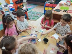 Ovoj ideji se priključuje još dece i uskoro veći broj dece pravi svoju „Kanapsku sliku“ na papiru i svako svoju kači na kanap da se suši u prostoru za vizuelno izražavanje.