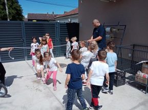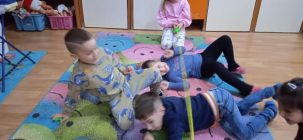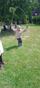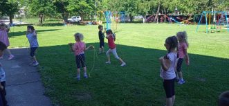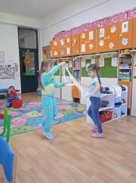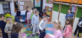 Ono što su videla podstiče decu da zatraže od roditelja da im pošalju vijače u vrtić kako bismo mogli i mi da radimo isto. Međutim, pošto je tih dana padala kiša, a prostor u sobi nije dovoljno veliki za tako nešto, rešavamo da potražimo još ideja za korišćenje vijače. Tih dana je preskačemo pojedinačno, provlačimo se ispod vijače i organizujemo „limbo – dens žurku“.
