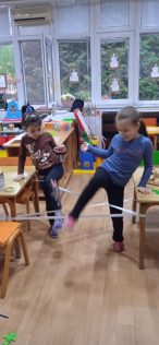 U danima koji slede vreme se popravilo i mi uspevamo da izađemo napolje. Roditelji se uključuju u donošenje lastiša i većeg broja vijača, tako da u dvorištu vrtića vežbamo preskakanje vijače i igramo zaboravljene igre uz pomoć lastiša. Igramo igru „Olimpijade“koju su deca nazvala „Paukova mreža“ i igru„Matematika“.