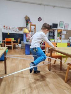 „Paukovu mrežu“ pravimo i u sobi između dva stola na zahtev dece i ona stoji tu danima kao prepreka koju preskaču ili se provlače kad god žele.
