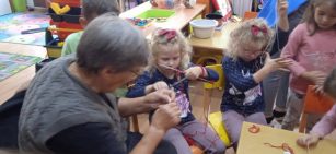 Pošto su im bake isplele narukvice i ogrlice, deca počinju da samoinicijativno i samostalno prave trake za kosu i prstenje.