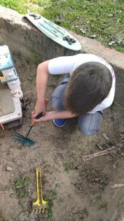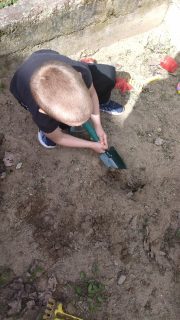 Proučavajući iskopavanje nafte i uglja videli smo slike kako arheolozi iskopavaju razne posude,novčiće. Sada smo arheolozi na zadatku, opremili smo se ašovčićima, četkicama i u našem peščaniku pronalazimo pravo areološko blago, novčiće, posude i stari nakit.
