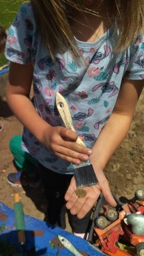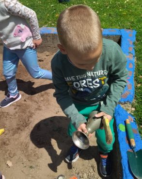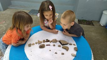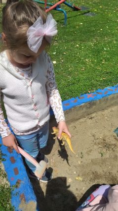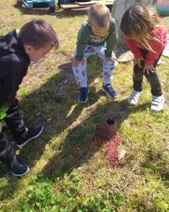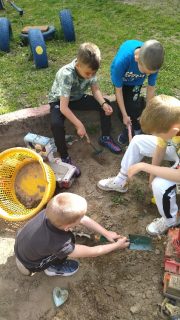 Tokom boravka u dvorištu deca i dalje kopaju u potrazi za blagom.Zapitali smo se koja sve prirodna blaga možemo naći u zemlji, saznajemo da su to razni minerali.