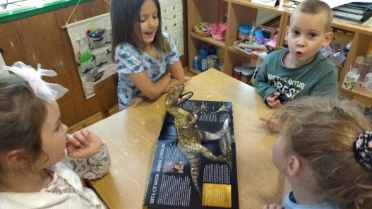 Dule nam je ispričao da su dinosaurusi izumrli i da se zato nalaze u zemlji.Ispričala sam im da se palentolozi bave iskopavanjem fosila izumrlih životinja pa samim tim i dinosaurusa.Deca su zaiteresovana za dinosauruse o njima saznajemo iz interaktivne 3D knjige o dinosaurusima.