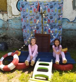 Dok smo razgovarali o tome kako da dođemo do pustog ostrva na kojem se krije blago, Dule je zapazio: “Za put na pusto ostrvo potreban nam je brod.“ Anđa se odmah setila i radosno uzviknula: “Mi već imamo brod kod nas u dvorištu!“. Ta ideja nas je oduševila,naš dvorišni brod postao je pravi gusarski brod spreman za veliku avanturu.