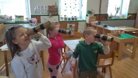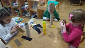 Durbin imamo jedan,međutim deca su poželela da svako ima svoj durbin. Pravimo durbine koristeći rolne od papirnih ubrusa i kolaž papira.