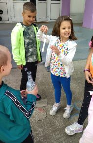 Eksperiment erupcija vulkana, potrebni sastojci za ovaj eksperiment su soda bikarbona,crvena boja,sirće i vulkan koji su napravila deca obloživši teglu plastelinom.Eksperiment je kod dece izazvao oduševljenje kako kažu kao pravi vulkan.