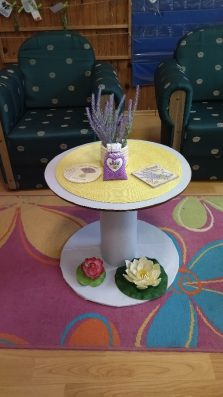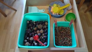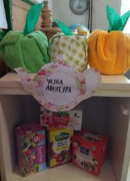 Pošto smo uveli tradicionalno ispijanje čaja u 10h, od roditelja smo dobili razne vrsta čajeva. Spakovali smo ih na jednu stalažu i taj deo nazvali : „ Čajna avantura“, deca biraju koji će čaj da piju.