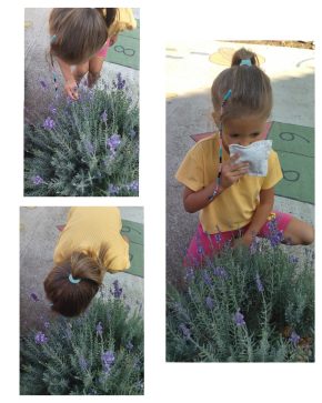 Igrajući se u dvorištu vrtića devojčica M.S je primetila žbunić sa ljubičastim cvetovima. Pomirisala je cveće i oduševljeno saopštila da mi u vrtiću imamo jastuče koje isto ovako miriše. Otrčala je u grupu i donela jastuče,upoređujemo miris biljke i jastučeta. Deca su se zainteresovala, postavlala pitanja.