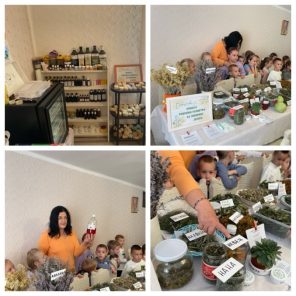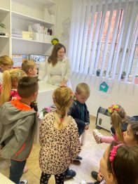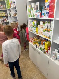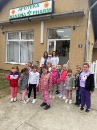 Farmaceutkinja Žaklina nam je objasnila da se lekovi prave od lekovitih biljaka, posebno sirupi koje deca piju kada kašlju od belog sleza, jagorčevine…Deca su dobila na poklon lizalice za imunitet i sapunčić od nevena.