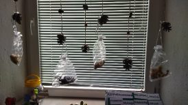 Nase bijke koje smo stavili da se suše već su se osušile, pakujemo ih u mrežaste vrećice.Vrećice smo okačili na prozor.