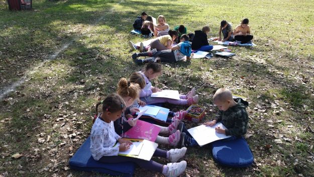 Učiteljice su nas pozvale na čas likovnog koji će se realizovati u prirodi, jer je i tema za crtanje priroda. Sa oduševljenjem smo prihvatili poziv, deca vole druženje i zajedničke aktivnosti sa decom iz škole.