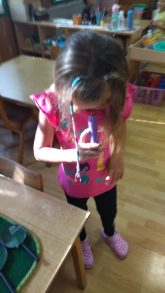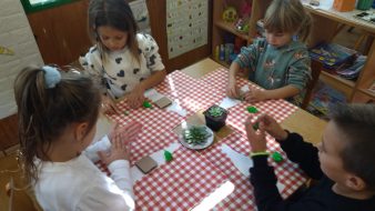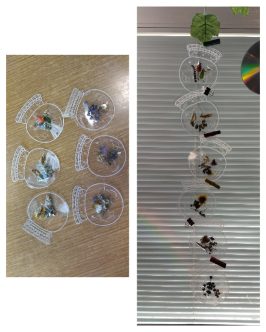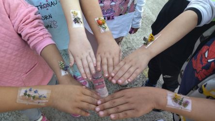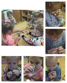 Dosta vremena provodimo u igrama i istraživanju kod nas u dvorištu.Deca svakodnevno pronalaze razne cvetiće, listiće, plodove. Smišljamo šta ćemo sa njima i dolazimo na ideju da napravimo narukvice. Presavijamo selotejp i lepimo na ruku, na njega deca lepe biljke koje su pronašli. Svako dete pokazuje svoju narukvicu i priča koje su biljke na njoj.