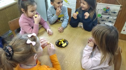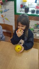 Donosim deci dunju, sva deca misle da je to jabuka.Upoređujemo jabuku i dunju i deca otkrivaju da se razlikuju po izgledu, mirisu.Deca su imala priliku da prvi put jedu dunju, svima se svidela osim Majdi njoj je kisela.Na internetu istražujemo lekovita svojstva dunje i otkrivamo da je lekovit plod, list i semenke.