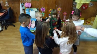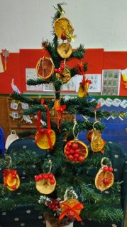 Radionica sa roditeljima izrada ukrasa i novogodišnje dekoracije od osušenog voća i raznih plodova. Ukrašavamo jelku ukrasima nastalim na ovoj radionici.