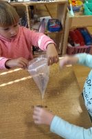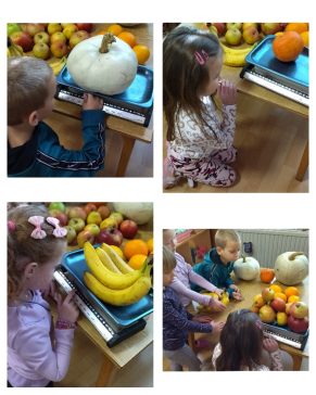 Dečak Dule nam je doneo vagu, koju je njegova baka koristila kada je išla na pijacu i prodavala svoje proizvode.To nam je dalo ideju da i mi napravimo pijacu, naučimo da koristimo vagu premeravajući voće koje „prodajemo“. Mereći upoređujemo veličine teško-lako, očitavamo na vagi koliko proizvodi koje merimo imaju kilograma.
