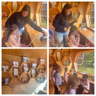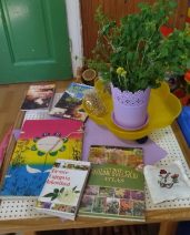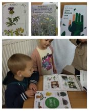 Posećujemo biblioteku“Vuk Karadžić“ u Velikom Gradištu sa ciljem da potražimo još literature o lekovitom bilju.Pošto smo se unapred najavili ljubazno osoblje nam je odvojilo prelepe knige.Deca su razgledala prepoznavala biljke o kojim smo razgovarali, postavljala pitanja o njima nepoznatim biljkama.