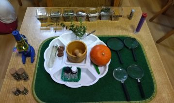 Pošto su deca zainteresovana za ovu temu vaspitač u prostor unosi postere na kojima su razne lekovite biljke, suve i sveže lekovite biljke ( lavandu, smilje, nanu, ruzmarin…), lupe za posmatranje biljaka, avan,razne posude za pakovane biljaka, knjige o lekovitim biljkama.