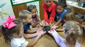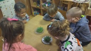 Devojčica Anđa je otišla do kancelarije po papirne ubruse. Videla je da baba Zora ( naša pomoćna radnica ) pakuje neke biljke u tegle. Obavestila nas je i mi smo zajedno otišli da vidimo koje su to biljke.