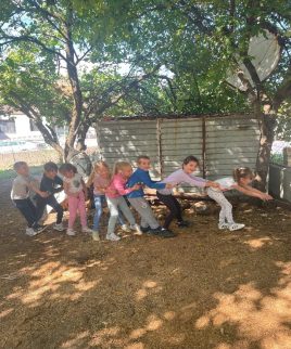 Priča „Deda i repa“ deci je od ranije poznata. Tražili su da je ponovo pročitam, a onda su se u dvorištu dosetili da je dramatizuju. Savitljiva grana je poslužila kao repa, a deca su redom bila likovi iz priče. Igra nadvlačenja je dugo bila interesantna.