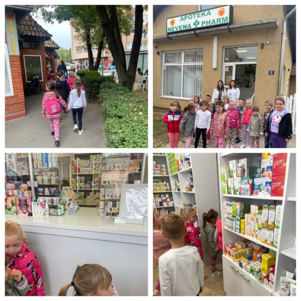 Sa drugarima iz Kisiljeva posetili smo apoteku „Nevena“. Od dve divne apotekarke koje u njoj rade saznali smo kako se i koji lekovi prave od biljaka, pokazale su nam svoju laboratoriju i sve sprave i orudje koje korise dok prave meleme, kreme, sirupe i druge preparate od lekovitog bilja.